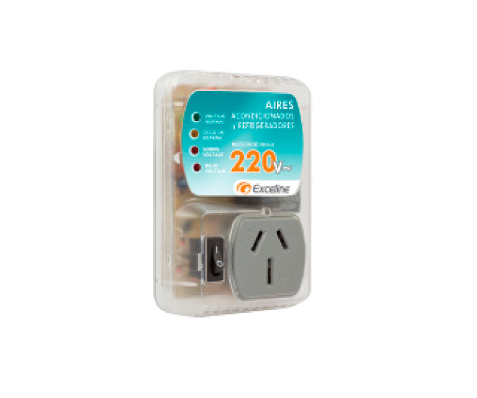 Protector contra alto y bajo voltaje con adaptador de tomacorriente, especial para aires acondicionados con tomas chinas GB2099 en sus dos tamaños, hasta 27000 BTU.