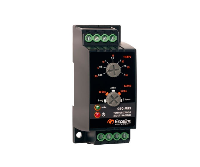 Ajustable y programable, capaz de ejecutar las funciones de temporizado a la conexión y desconexión.